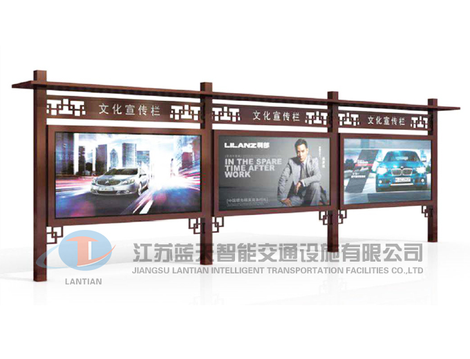 是一家生產宣傳欄,候車亭,公交站臺,閱報欄,指路牌,廣告垃圾箱,滾動換畫燈箱等系列產品廠家!產品多達上百種,亦可根據(jù)客戶的需求加工制作各種型號、規(guī)格的產品。目前已經成功的向市場推出裝備有太陽能的各類產品,緊跟國家倡導“節(jié)能低碳”的環(huán)保政策。